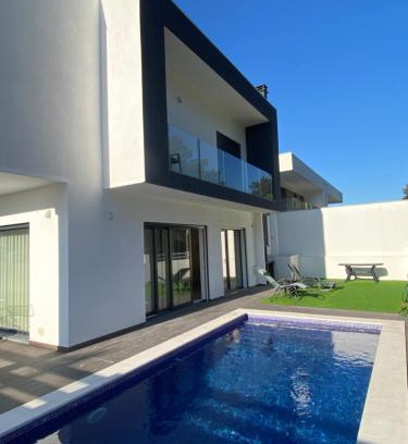 Luxury villa surrounded by nature and beach offers accommodations in Amora, 11 miles from Jeronimos Monastery and 12 miles from Dona Maria II National Theater. This property offers access to a balcony, free private parking, and free Wifi. St. George's Castle is 13 miles away and Miradouro da Senhora do Monte is 13 miles from the villa. Featuring a terrace and pool views, the spacious villa includes 3 bedrooms, 2 living rooms, flat-screen TV, an equipped kitchen, and 4 bathrooms with a hot tub and a shower. Towels and bed linen are offered in the villa. The property has an outdoor dining area. Guests can enjoy the outdoor swimming pool and garden at the villa. Rossio Square is 12 miles from Luxury villa surrounded by nature and beach, while Commerce Square is 12 miles from the property. Humberto Delgado Airport is 15 miles away.
