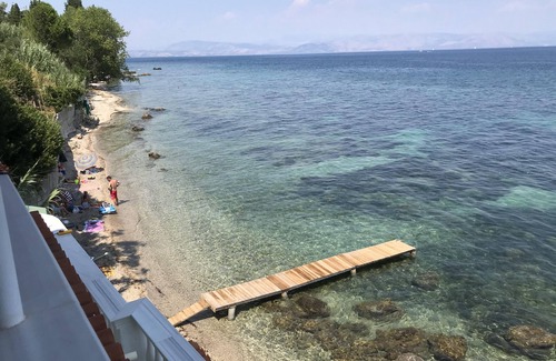 A peaceful and picturesque villa, right on the sea minutes from Corfu town. The villa has a private ladder down to the beach, with a jetty and x 2 Double Kayaks and two single Kayaks,plus two paddle boards plus snorkel equipment We also have 2 fishing rods and tackle for the guests to use. You can hire a speed boat by arrangement.The Villa has plenty of outdoor entertaining space with large staggered patios, and shaded dining areas. There is also a Jacuzzi, with sea views. Villa Waves is in an ideal location, halfway between the north and the south of the island, with Corfu town only 6km away. There are a handful of secluded beaches and local villages within easy distance. The closest being Benitses a traditional Greek village boasting a marina, as well as numerous bars, tavernas. Villa Waves now boasts a 80 m2 Roof terrace with Fantastic Sea Views !!! see last season pictures by following us on Instagram.