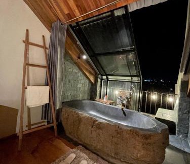 Food & DrinkTea/Coffee makerBathroomShower, Bathtub, Hairdryer, Bathrobe, Free toiletries, Toilet, Private Bathroom, Slippers, Bathtub or shower, Bidet, Towels, Toilet paperGeneralAir conditioningOutdoorsBalcony, TerraceKitchenRefrigerator, Electric kettle, Kitchenware, Dining tableMedia & TechnologyFlat-screen TVViewView, Mountain viewLiving AreaDining areaBedroomWardrobe or closet, LinensRoom AmenitiesClothes rack, Drying rack for clothing, Socket near the bed |