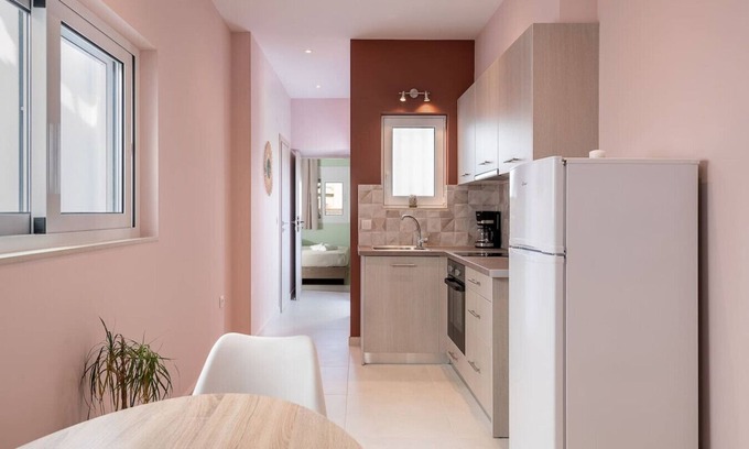 Welcome to M City 6, a spacious and modern apartment nestled in the peaceful seaside neighborhood of Nea Chora, just a short walk from the vibrant heart of Chania. Perfect for families or groups, this three-bedroom apartment combines clean, minimalist design with practical comforts, ideal for a relaxing stay near the beach and city center.