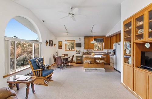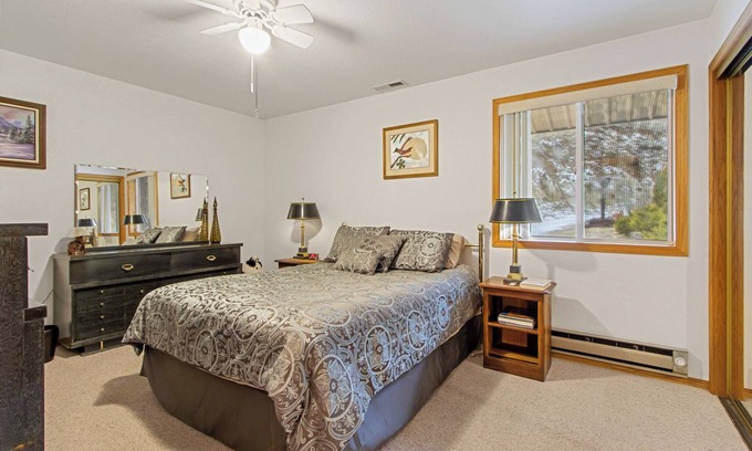 This Frozen Dog Digs House offers a ground-level detached apartment has two separate bedrooms each with a queen-size bed, shared bath, front room and kitchen/dining area, Wifi and Streaming TV, and a fantastic view of the Emmett Valley! Take it easy at this unique and tranquil getaway.