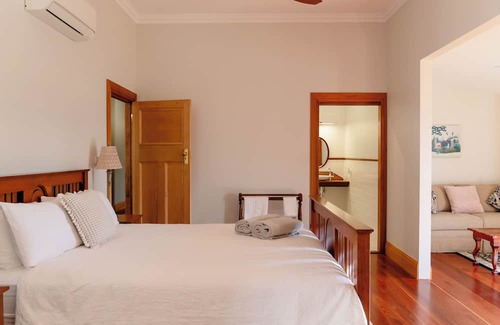 Maddies is an unassuming country home built in the late 1800's. Boasting polished wooden floors, high ceilings, quality linen, and period furnishings which all add to the old world charm. In winter curl up by the log fire with a good book or glass of wine. In summer enjoy the leafy gardens and shady verandahs. Maddies is set in an acre of lovely cottage gardens. Meander through the vine covered arbour, past water gardens, and enjoy the relaxed privacy of this unique setting. We are pet lovers ourselves and your pets are welcome by prior arrangement. Three rooms are specifically set up for you to bring your furry companion.