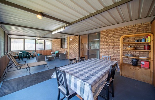 Madora Retreat is a free-standing brick and tile home facing north/south in a large, reticulated garden. The back garden is fully fenced and safe for small children. There is off-road parking in an attached carport plus extra parking for a boat or caravan..