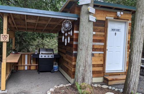 Unique experience to enjoying your stay in the forest as a guest in Glamping Madrona Tent with fire pit and mini fridge. During the cold you can use heater inside the tent to keep you warm and cozy. Our camp offers water closet with shower cabin .Also enjoy using barbeque place for you dinner or lunch. We offer 2 bikes, so you can ride to enjoy mountain views.