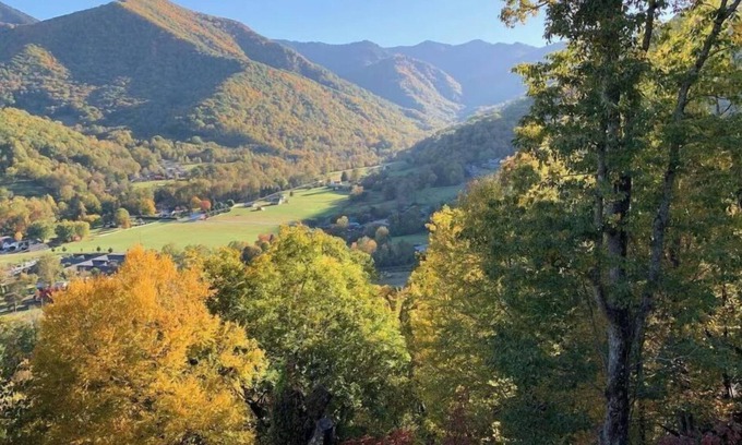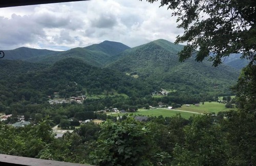 The mountain view starts with glass doors leading to a 50 foot covered deck with a hot tub and rocking chairs to relax. Our view includes the mountains and farmlands of Maggie Valley. The main floor has three bedrooms and two large full double sink bathrooms, an open concept living area with a Gas Fireplace, Smart TV, Blu Ray/DVD Player. The fully stocked Kitchen has a Microwave, Dishwasher, Coffee Maker, Toaster, Crock Pot, Tea Kettle, Dish set, Glassware, Cutlery, Pots and Pans....everything you need to prepare any meal.