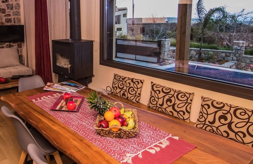 The property also features a private pool with sunbeds where guests can relax and enjoy the amazing summer days of Rhodes. The area also has wonderful paths among the trees, suitable for hiking or mountain biking. The village of Salakos has some grocery shops where you can get fresh vegetables and basic supplies, and traditional restaurants offering authentic home-made delicacies with produce from the local farms.