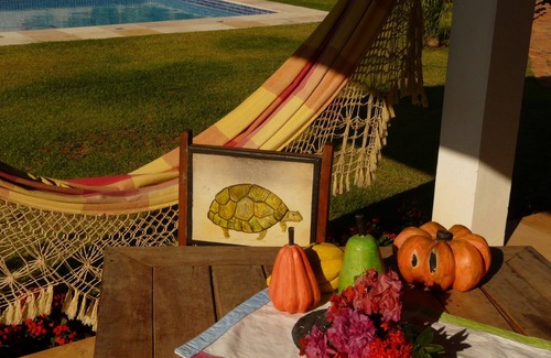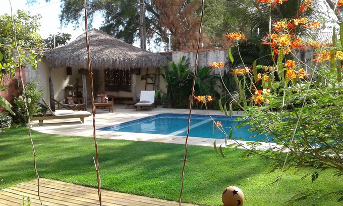 House decorated with charm and taste, ideal for holidays with family or friends! A few meters from a large, uncrowded sandy beach and a few kilometers from Cumbuco, a charming tourist town and unmissable spot for kite surfers. Large house with a magnificent tropical garden, swimming pool, barbecue available and a caretaker who will facilitate your stay. The house has 3 bedrooms, a relaxation area, a terrace with hammocks, a TV room and wifi!