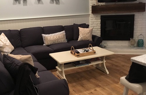 One Bedroom, One Bath unit across the street from Ocean Beach with all new fixtures, fully loaded kitchen, Carrera Marble countertops, and stainless steel appliances. 46 inch flatscreen in living room, and flatscreen in bedroom as well. Pull- out Queen size bed in Living Room. Sliding door opens up to gorgeous view of pool and ocean at same time. Down the block from the World Famous Gurney's Inn & Spa. Next door to Surfside Restaurant. Walking distance to town. Linens provided.