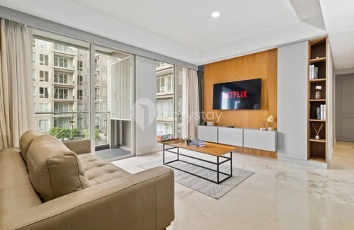GeneralFull-sized refrigerator/freezer, Microwave, Stovetop, Wheelchair accessible, Number of living rooms 1, Air conditioning, Number of bathrooms - 2, Flat-panel TV, Eco-friendly cleaning products, Private bathroom, No rollaway/extra beds, Rice cooker, No cribs (infant beds), Cleaning supplies, Number of bedrooms - 3, Kitchen island, Bed count maximum 3, City view, Bed count minimum 3 |