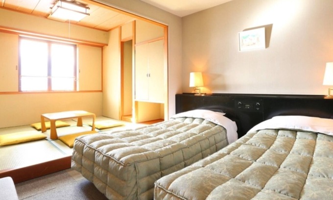 We are looking forward to your visit / Nonsmoking Twin bed Japanese style room 45 tatami mats Futon if staying for 3 or more people Bath toilet and heating available For 5 or more people including children we recommend a room of 29 to 36 square meters