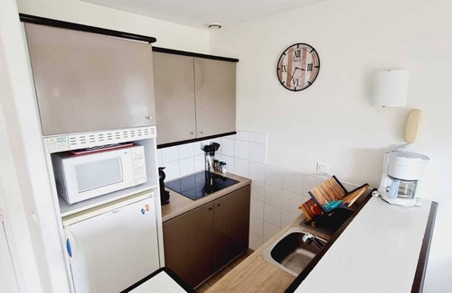 • beautiful living room with equipped kitchen (fridge, electric hob, microwave, dishwasher, toaster, dolce gusto coffee maker, dishes and household utensils) and a comfortable living room with a flat screen, DVD player