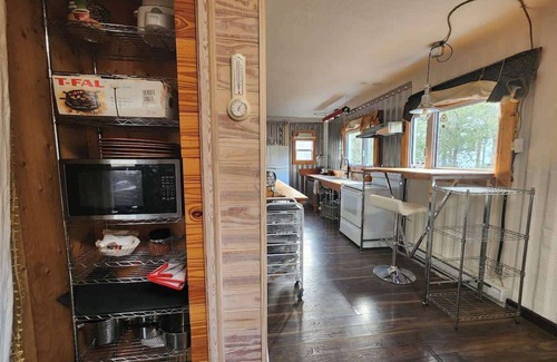 Perchée devant une montagne offrant un panorama époustouflant, cette maison se distingue par sa conception originale en conteneurs maritimes. Construite il y a une quinzaine d'années et entièrement rénovée en 2024, elle allie un style industriel audacieux à la chaleur authentique du bois rustique. Nichée au cœur de la nature, elle vous promet une expérience unique, tout en étant idéalement située à seulement 5 minutes de la ville d’Amos