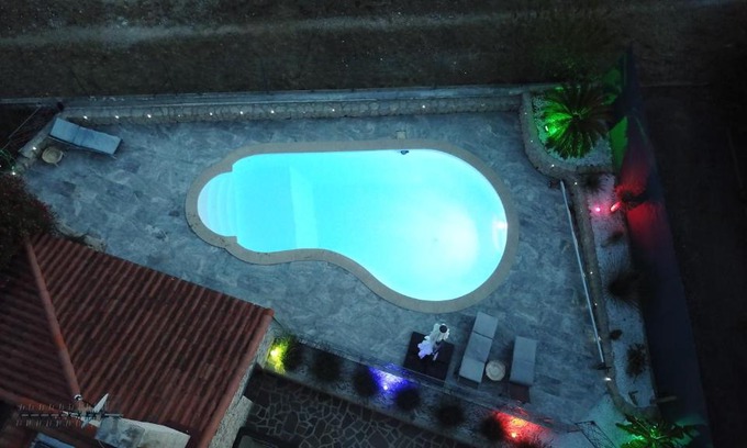 BathroomBody soap, Hairdryer, Toilet, Bathtub or shower, Shampoo, Private bathroom, Toilet paper, Free toiletries, Shower, Towels, Walk-in showerMedia & TechnologyFlat-screen TV, Cable channels, Satellite channels, Streaming service (like Netflix), TVGeneralAir conditioning, Ironing facilities, Trash cans, Soundproof, Private entrance, Tile/Marble floor, Heating, Smoke Alarm, Key accessServicesWake-up service/Alarm clock, Wake-up serviceKitchenDryer, Dining table, Wine glasses, Washing machineBedroomLinens, Extra long beds (> 6.5 ft), Wardrobe or closetLiving AreaDining areaOutdoorsBarbecue, Outdoor furniture, Private pool, Outdoor dining area, TerraceViewGarden viewAccessibilityEntire unit located on ground floor, Upper floors accessible by stairs onlyRoom AmenitiesAdapter, Clothes rack, Feather pillow, Socket near the bed, Drying rack for clothingEntertainment & Family ServicesChild safety socket coversPool and SpaPool towels, Pool with a view, Shallow endFood & DrinkBottle of water, Wine/Champagne |