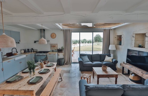 Maison de Campagne Rénovée Avec Braséro, à 20 Minutes des Plages! is located in Grezac. Maison de Campagne Rénovée Avec Braséro, à 20 Minutes des Plages! provides accommodation, featuring Barbecue/Outdoor Cooking, Child Friendly, Internet, among other amenities. This House features Barbecue/Outdoor Cooking, Child Friendly, Internet, to make your stay a comfortable one.