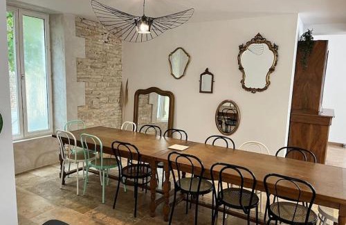 Providing a garden, Maison de groupe en Bourgogne L antre amis provides accommodations in Molesmes. The vacation home is 18 miles from Tanlay Golf Course. The vacation home also offers free Wifi and free private parking. Offering a terrace with garden views, this vacation home also has a flat-screen TV, a well-equipped kitchen with a dishwasher, an oven, and a microwave, as well as 3 bathrooms with a shower and a hair dryer. The property has an outdoor dining area.
