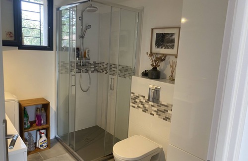 Il est attenant à la maison, sans vrai vis à vis , et est accessible par une entrée indépendante.