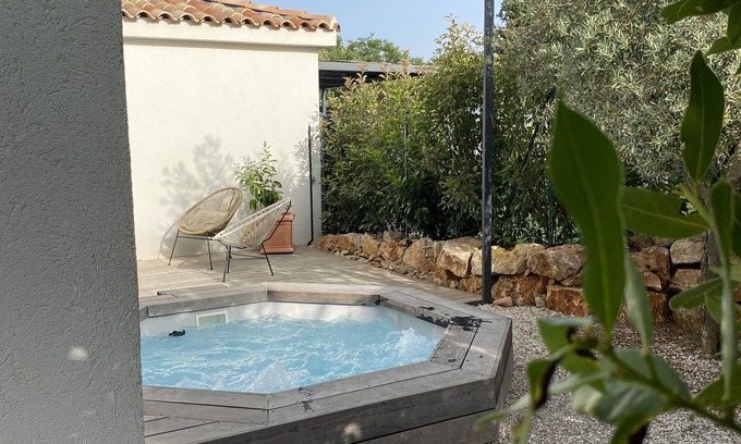Vous pourrez vous détendre sur la terrasse ensoleillée avec jacuzzi, parfait pour vous rafraîchir sous le soleil éclatant de Provence et profitez d'un espace repas en plein air avec plancha et barbecue pour des grillages sous le coucher du soleil.