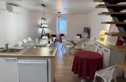 Maison de ville des Bernardines - Orgelet is located in Orgelet, just 11 miles from Val de Sorne Golf Course and 21 miles from Abbaye Lake. The property is around 16 miles from Lac de Chalain, 20 miles from Herisson Falls, and 7.4 miles from Vouglans Lake. The vacation home consists of 3 bedrooms, a living room, a fully equipped kitchen with a dishwasher and a coffee machine, and 1 bathroom with a walk-in shower and a hair dryer. This vacation home also includes a terrace that doubles up as an outdoor dining area. For added privacy, the accommodation has a private entrance and soundproofing. Dole-Jura Airport is 47 miles from the property.