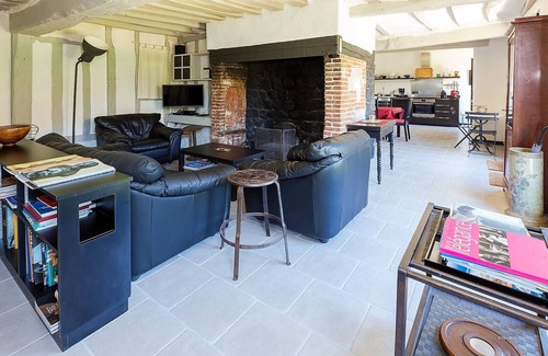 This old farmhouse of the seventeenth century, renovated with refinement, is in the heart of the charming village of Varengeville sur mer, a village that welcomed so many painters and famous artists, a village rich in beautifull gardens. The house, on two levels, cultivates old and contemporary charm . The ground floor blossoms around a masterful old fireplace; on one side the cozy living room and a small serene desk dedicated to writing and reading ... On the other the kitchen-dining room with a wood stove, integrated into the fireplace.