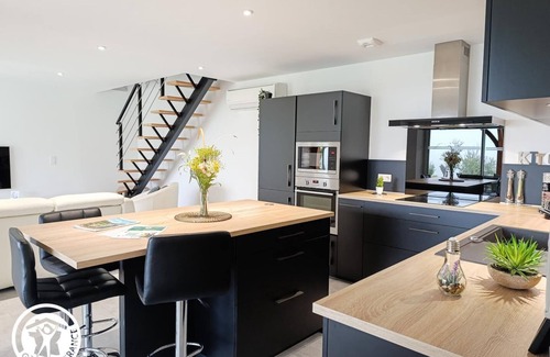 Very pleasant lodging with its panoramic landscape on the countryside, its current and warm decoration, its double garage with ping-pong table. You will find peace and serenity in a preserved natural setting. During the long summer days, you will appreciate the heated swimming pool to share with the owners. The advantage of this cottage is its reversible air conditioning and its location. Only 14 km from the historic and medieval center of Figeac; close to all shops and leisure center. You can discover at your convenience the Lot "land of wonders", Aveyron and its terroir or even the great wild spaces of Cantal. On the ground floor: Living room / fully equipped and fitted kitchen area, reversible air conditioning, laundry room, separate toilet with hand basin, double garage, ping-pong table, bicycles available, dedicated and protected socket to recharge your electric car. Upstairs: 2 bedrooms (2 beds 0.90m, 1 bed 1.40m), bathroom with shower and bath, separate toilet. Reversible air conditioning in each room (air conditioning and heating). Large terrace of 40m2, shared swimming pool 4.5 x 9 heated and secured by an alarm, deckchairs, garden furniture, plancha and barbecue.
