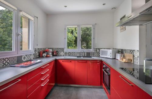 Offering a garden, Maison pour 6 à 900m de la plage offers accommodations in Saint-Brevin-les-Pins. The vacation home, set in a building dating from 2001, provides free Wifi and free private parking. Plage des Rochelets is a 13-minute walk from the vacation home and Saint-Nazaire Train Station is 8.6 miles away. Providing a terrace with garden views, this vacation home also provides guests with a TV, a well-equipped kitchen with a dishwasher, an oven, and a microwave, as well as 3 bathrooms with a bath and a hair dryer. The accommodation has a fireplace. Pornic Train Station is 8.8 miles from the vacation home, while Pornic Castle is 8.8 miles away. Montoir Airport is 6.8 miles from the property.