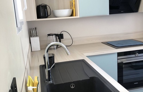 Prepare a home-cooked meal in the kitchen, complete with an oven, a stovetop, and a refrigerator, as well as a coffee maker, an electric kettle, and a microwave. And you won't have to pack extra clothes, because you'll also have access to laundry facilities. Other amenities include an ironing board, heating, and a dining table.