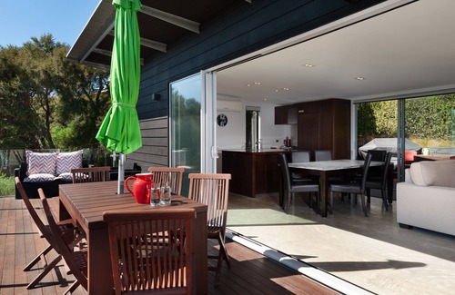 Immaculate near new modern architecturally designed on sunny elevated site, This stunning home is furnished to a high standard, has an open plan kitchen / dining / living area that opens out onto a generous size hardwood decking to enjoy the stunning sea view. Downstairs the bedrooms open out onto a private garden and sheltered courtyard.