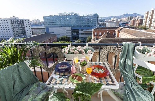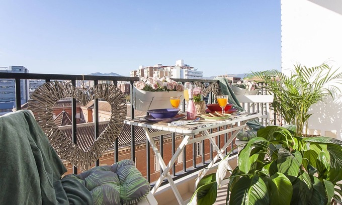 Luminosos apartamento de dos dormitorio, frente a la estación de tren - AVE María Zambrano, con una amplia y soleada terraza.A 800 metros de la playa y a diez minutos paseando del centro históricos de Málaga.Totalmente equipada, con cocina totalmente amueblada, WIFI y espacio de trabajo.