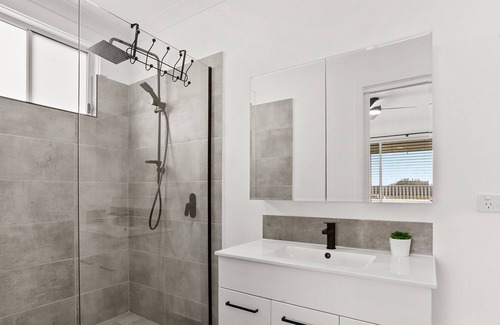 The house is newly built designed for comfort, ease & relaxation. The top floor of this house has 2 bedrooms, the main with an en-suite and both bedrooms with ceiling fans and TVs. The other 2 bedrooms are located downstairs, also with ceiling fans and beds designed for a cosy night's sleep.