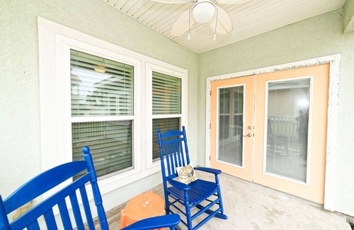 This beautifully furnished ground floor townhome has a fantastic garage with big screen TV and some seating for Game Day and BBQing in the drive way. The house is very comfortable and spacious. Perfect for families or couples to share with 2 queen beds and a king master suite. There is also a shaded patio off of the living room with a path leading to the shared pool. This home is located in the golf cart approved driving area.