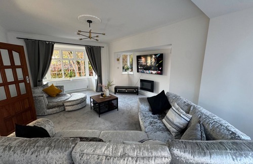 Manchester City Oasis - Spacious 5 Bedroom House is located in Gorton. Manchester City Oasis - Spacious 5 Bedroom House provides accommodation, featuring Wellness Facilities, Fireplace/Heating, Child Friendly, among other amenities. This House features Wellness Facilities, Fireplace/Heating, Child Friendly, to make your stay a comfortable one.