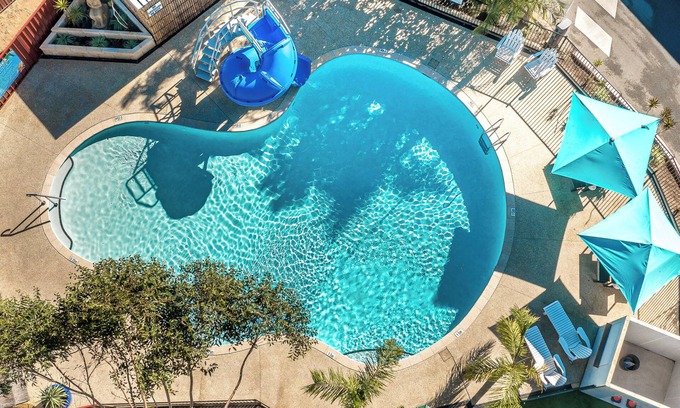 Recreational amenities at the holiday park include a waterslide and an outdoor pool.