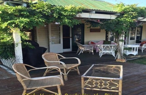 Overlook the River, your own private jetty and safe sand swimming beach from the shady vine clad Verandah