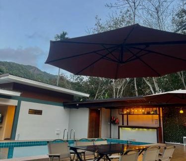 Providing barbecue facilities, Manee Poolvilla features accommodations in Khanom. A hot tub and a car rental service are available for guests. There's a sun terrace and guests can use free Wifi and free private parking. The villa also offers 3 bathrooms. Daily room service is also available. Guests can relax in the on-site bar or lounge, while packed lunches are also available upon request. For guests with children, the villa provides indoor and outdoor play areas. Guests can enjoy the outdoor swimming pool and garden at Manee Poolvilla. Donsak Ferry Terminal is 13 miles from the accommodation. Samui International Airport is 45 miles away, and the property offers a paid airport shuttle service.