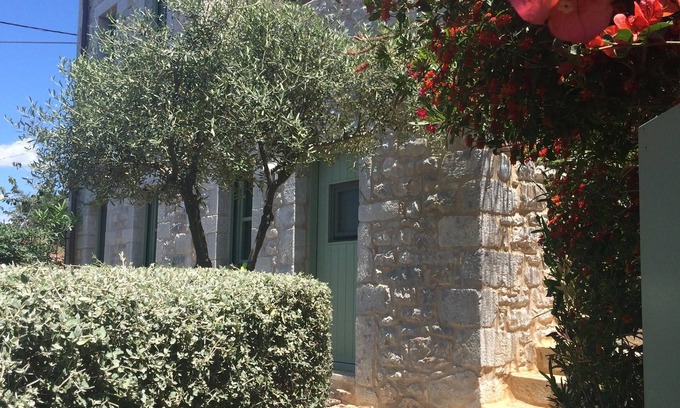 Quiet, comfortable apartment with garden and sea view. The house is newly renovated and has 55 sqm, 1 bedroom with a desk, a living-dining room with kitchenette, a bathroom with sink, shower and toilet. From all the windows you have a view over the garden to the sea. The apartment is on the ground floor of a two storey traditional stone house, with separate entrance and private garden in front of the apartment.