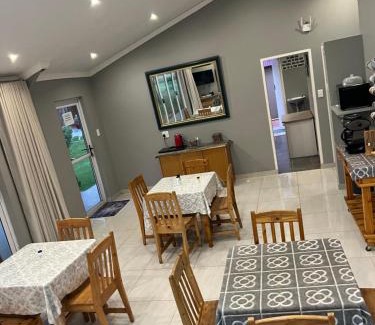 Manna House in Vereeniging provides accommodations with a terrace, barbecue facilities, and a shared lounge. This guest house provides free private parking, a shared kitchen, and free Wifi. The guest house offers garden views and a picnic area. The units come with tiled floors and feature a fully equipped kitchen with an oven, a dining area, a flat-screen TV, and a private bathroom with shower and a hair dryer. A microwave, a toaster, and fridge are also provided, as well as a kettle. At the guest house, all units are fitted with bed linen and towels. Outdoor play equipment is also available at the guest house, while guests can also relax in the garden. Leeukop Golf Course is 2.1 miles from Manna House, while Meyerton Golf Club is 12 miles away. O.R. Tambo International Airport is 48 miles from the property.