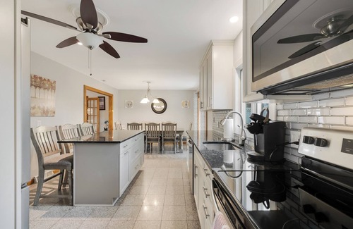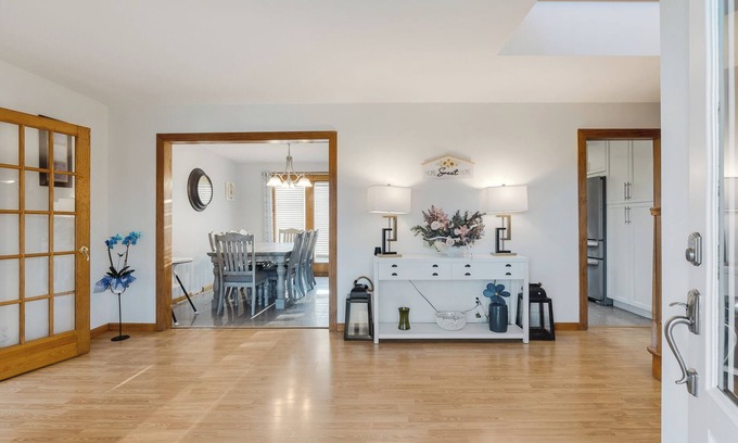 Discover the ideal retreat for your family getaway! Nestled on nearly an acre of idyllic countryside, this charming home boasts cathedral ceilings, generously sized bedrooms, 2 main suites, and a new expansive deck overlooking the inviting pool. Step through the door into a haven of gleaming hardwood floors, bathed in natural light pouring through oversized windows.
