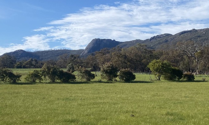 Individual self contained private cottages, set on a 125 acre farm backing onto the Porongurup Ranges with spectacular views, including to the north the Sterling Ranges. Centrally Located in the South west region of WA. You can spend 1 or 2 days hiking the Porongurup and Sterling ranges or dwell a little longer and visit some of the spectacular beaches in Albany or Denmark, which has a vibrant and eclectic atmosphere and is well catered for tourists. The two cottages, Boobook (1 queen, 1 Bunk bed, sleeps 4) Carnaby (1 queen, 1 single, sleeps 3 )are approximately 70 meters apart, giving Guests space and privacy, obscured by vegetation & set back over 500 meters from the road, allowing peace and quiet. A short drive will take you to the Porongurup National Park and the famous Granite Sky Walk. There are many walks, boutique and award winning wineries and some places do food although limited. The Sterling Range national park, Albany and Denmark are only a 40 min drive. Prices based on 2 people 1 room, if 2 rooms required additional person levy is applied.