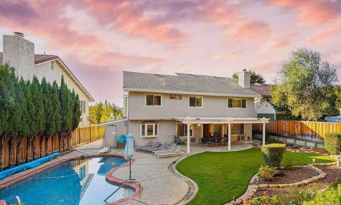 Discover Silicon Valley charm at our 4-bedroom pool house in the heart of San Jose. This 2900 sq ft spacious retreat offers a cozy escape for family and friends. Dive into the pool, unwind in the expansive backyard, sitting in the Jacuzzi or relax on the patio. With a luxurious workspace, it's perfect for remote work. Your ideal home away from home awaits!