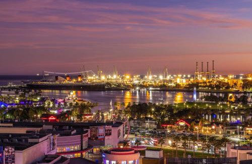 @ Marbella Lane - Sleek Corner Ocean View is located in Long Beach, just 1.9 miles from Queen Mary, Long Beach and 6.3 miles from Battleship USS Iowa Museum. The air-conditioned accommodation is a 18-minute walk from Junipero Beach, and guests can benefit from private parking available on site and free Wifi. During your stay at this apartment, you can use an outdoor swimming pool, as well as a selection of a fitness room and an elevator. Providing a balcony and sea views, the spacious apartment includes 2 bedrooms, a living room, flat-screen TV, an equipped kitchen, and 2 bathrooms with a shower. Towels and bed linen are featured in the apartment. The property has an outdoor dining area. Guests can make the most of the warm weather with the property's barbecue facilities. Disney California Adventure is 19 miles from the apartment, while Anaheim Convention Center is 20 miles away. Long Beach Airport is 5 miles from the property.
