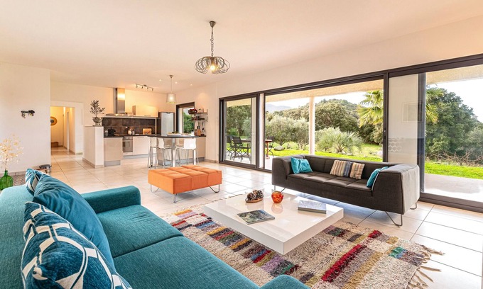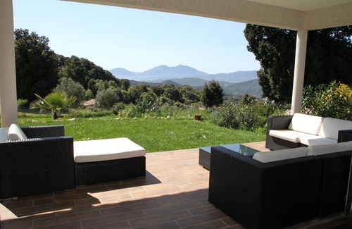 Cocoonr/Book&Pay offers this beautiful 120 m² house with private pool and mountain views, set in 2,800 m² of garden, for rent in Cauro. It can accommodate 6 travellers, adults only, as the house and its surroundings are not suitable for children. There is a 50 m² living room, a fully equipped kitchen, three bedrooms and two shower rooms. Wifi, bed linen and towels included - we're waiting for you!