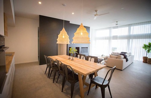 Downstairs features another massive sitting room with a 3 seater comfy lounge, wood fireplace and Panasonic Smart 50 inch Full HD LED LCD TV for those stay in movie nights. As you walk through the house you will come to the second Master Bedroom Suite complete with king bed and modern en-suite. The final bedroom is set with a queen and single bunk beds. A huge family bathroom which features a large bathtub also resides on this level.