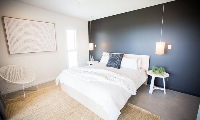 Relax and enjoy the view in the main living area upstairs with ample natural light from the large windows and doors. Equipped with a comfortable lounge suite, wood fireplace and Panasonic Smart 50 inch Full HD LED LCD TV, giving you that at home feeling. Open up the doors to the large balcony and let the outside in, whilst you cook the family meal in the large well appointed kitchen, complete with electric induction cooktop, electric oven and coffee machine. This open living area leads through to the master bedroom which houses a king bed and has an amazing modern en-suite. Doors open to the balcony and its stunning views over to the famous North Point surf break. Additionally on the top floor are two bedrooms complete with their own modern bathroom including bath. One bedroom housing a queen bed and the other twin king singles which can be made as a king.
