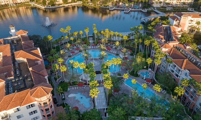 Marriott's Grande Vista is a magnificent oasis in the center of Orlando's excitement, with an ambiance as warm and friendly as the Florida sun. As you drive down a private boulevard of tropical beauty, cool waters sparkle at every turn, from the warm, clear waters of five separate pool complexes to a quiet lake where paddleboats beckon. Enjoy a leisurely stroll throughout our grand resort, or explore it with your family on a bicycle built for four.