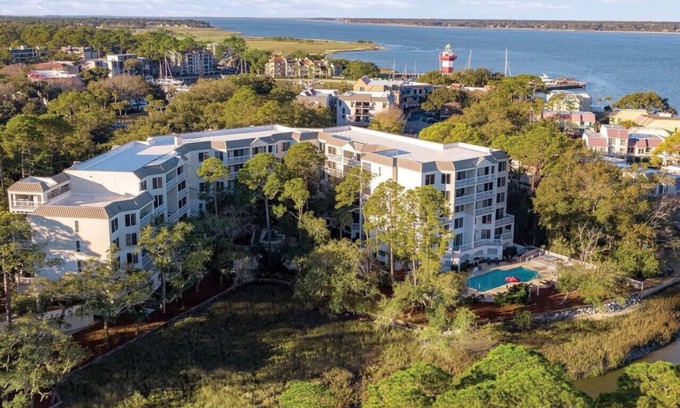 Overlooking scenic Calibogue Sound on the southern end of Hilton Head Island lies Marriott`s Harbour Club, one of three Marriott Vacation Club℠ resorts within Hilton Head`s Sea Pines Resort.