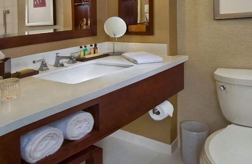 Marriott Louisville East offers 252 accommodations with minibars and safes. Beds feature down comforters and premium bedding. 55-inch flat-screen televisions come with premium digital channels. Bathrooms include bathtubs or showers, complimentary toiletries, and hair dryers.