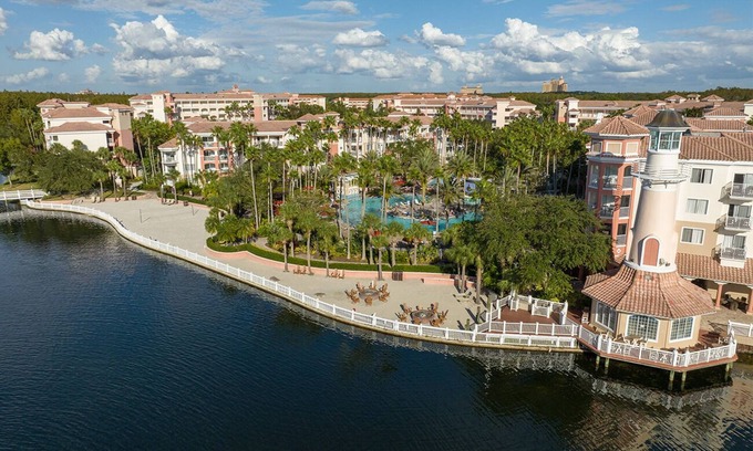 Cool, azure waters greet you around every corner, from the four separate pool complexes to the pristine lake reflecting the morning sun. Sink your toes into the sand at the lakeside beach, or stroll around the property on the boardwalk, stopping to enjoy a drink at the outdoor bar, of course. But that's not all Marriott's Grande Vista has to offer - elevate your golf game at the adjacent Marriott Golf Academy, pamper yourself at The Spa at Grande Vista, grab a bite to eat at one of several restaurants or take to the lake with equipment rentals compliment The Harbour Master!