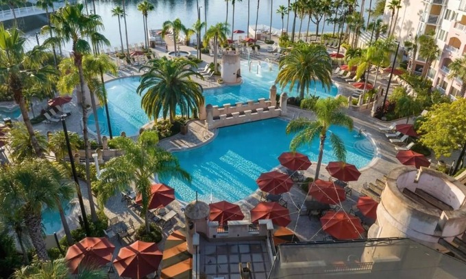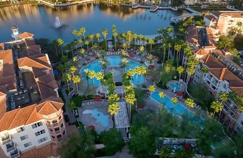 In the heart of a favorite vacation and theme park destination is Marriott's Grande Vista. Spacious studio units have a kitchenette, and one-, two-, and three-bedroom villas feature fully equipped kitchens, separate living and dining areas, washers and dryers, private balconies, and Wi-Fi. There are four separate pool complexes and a quiet lake offering paddleboat rentals. Other amenities include The Marketplace convenience store, on-site dining, The Spa at Grande Vista, and a nine-hole golf course with a full-service golf school.