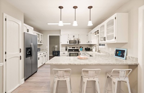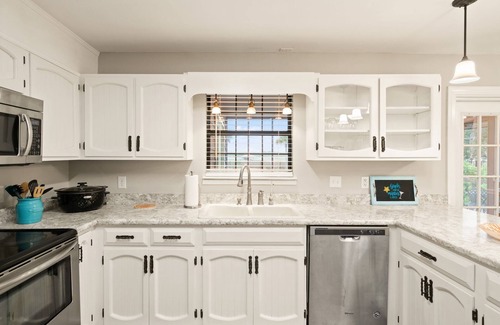 The kitchen is well-appointed with everything a chef needs to whip up a meal!