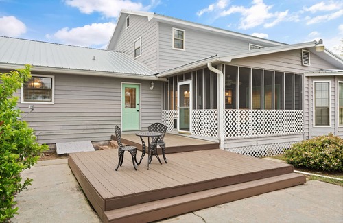 Enjoy your coffee or dinner on the screened-in back porch and watch the sun rise or set over the water. Your pups can safely run around the fenced in backyard while you do this.